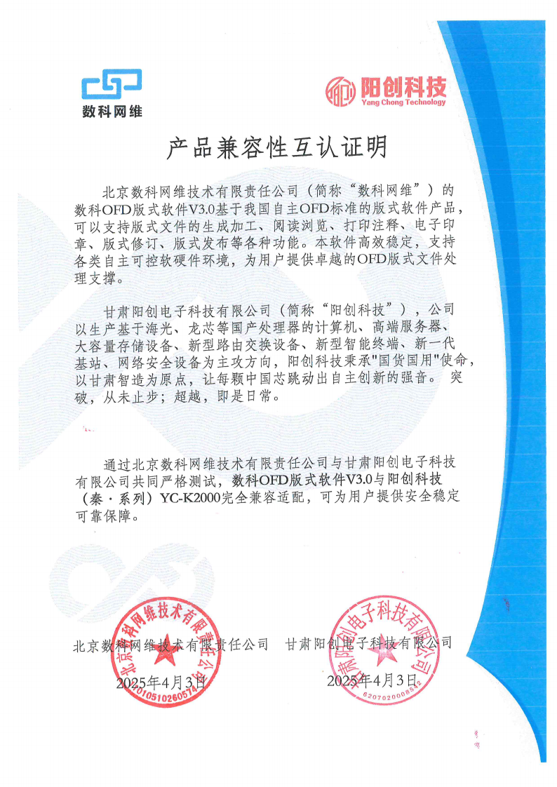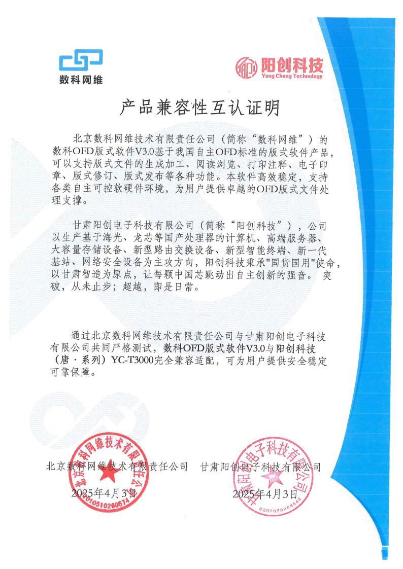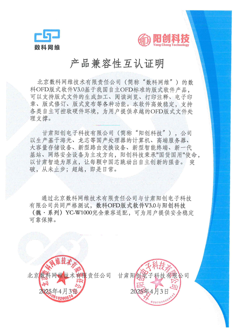 数科OFD版式软件V3.0互认证